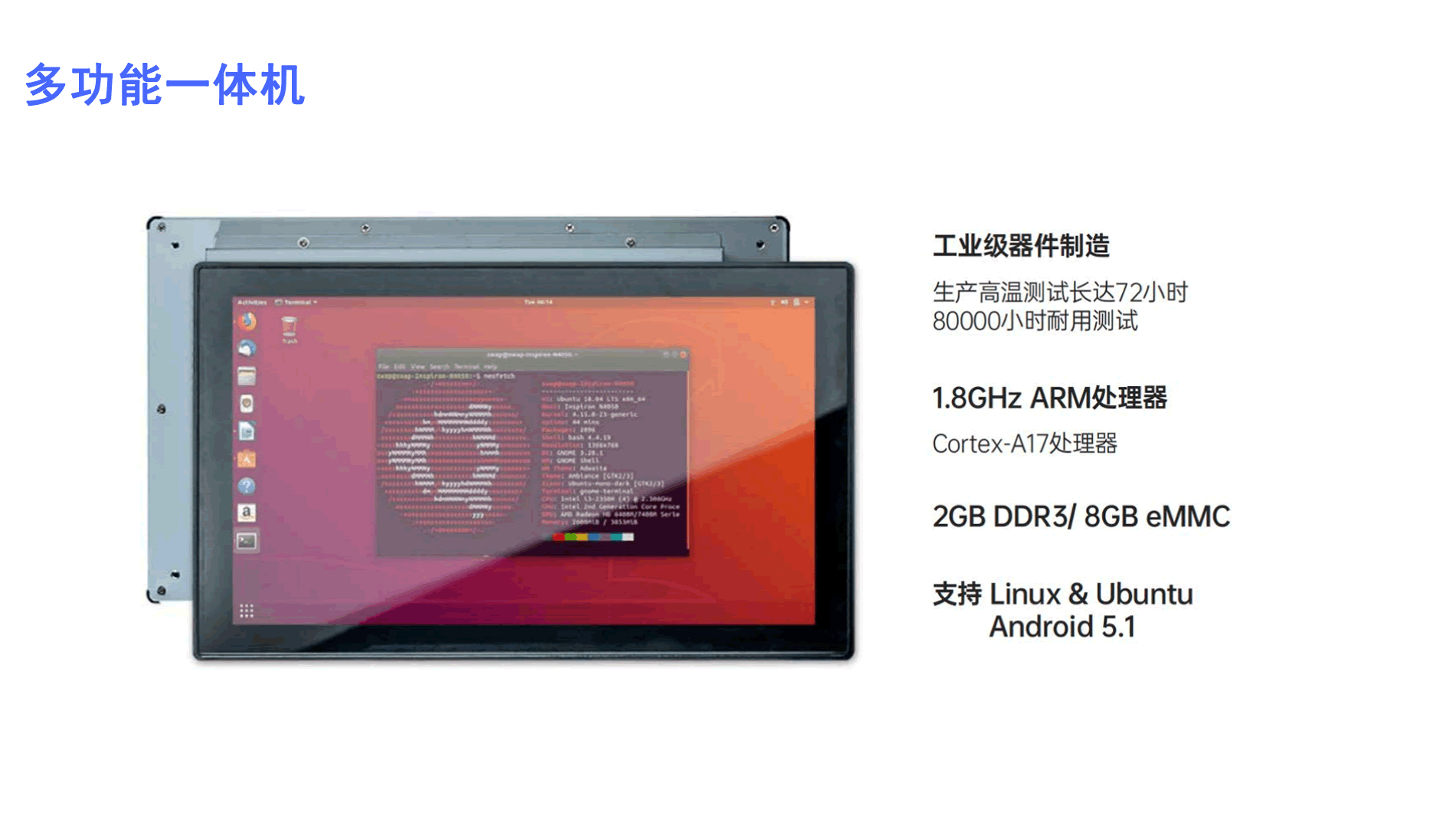 武汉捷文科技有限公司是北京智奇科技在武汉的子公司,成立于2018年。 专注智能人机界面产品。主要采用Rockchip、高通等工业级ARM处理器,工业级十点触控电容触摸屏,提供高性能、高性价比的解决方案,广泛应用于智能家电、工程机械、美容保健设备等行业。